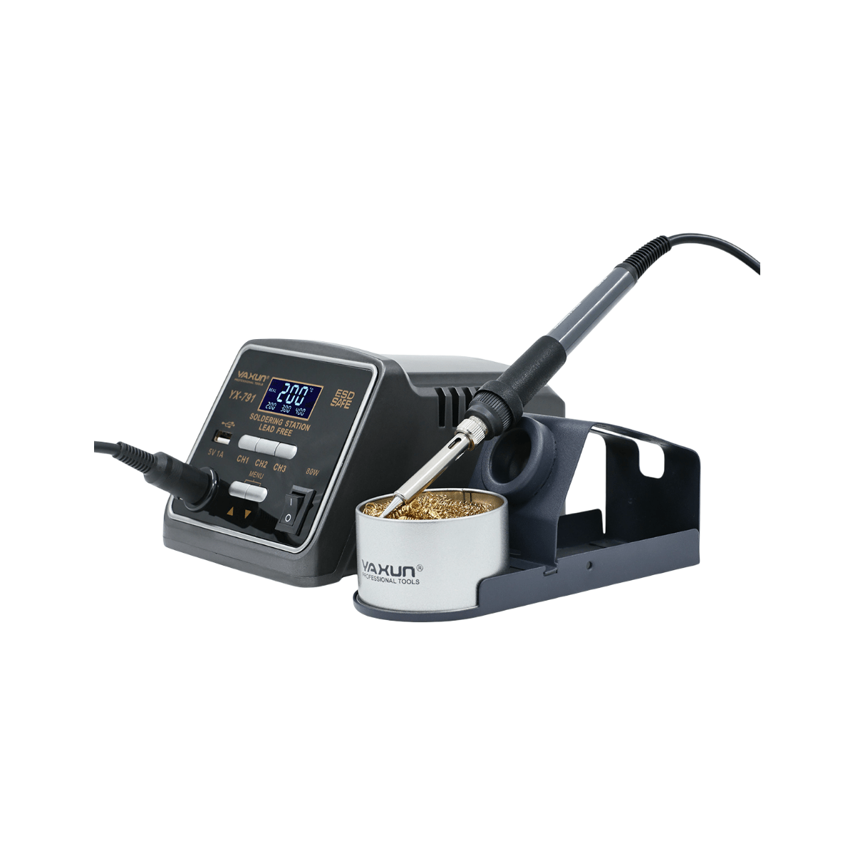 كاوية YAXUN YX-791 هي محطة لحام احترافية متكاملة تحتوي على كاوية إلكترونية دقيقة + هيت إير (هواء ساخن)، مما يجعلها مثالية لصيانة الأجهزة الإلكترونية المعقدة مثل الموبايلات، اللوحات الأم، والدوائر الدقيقة.