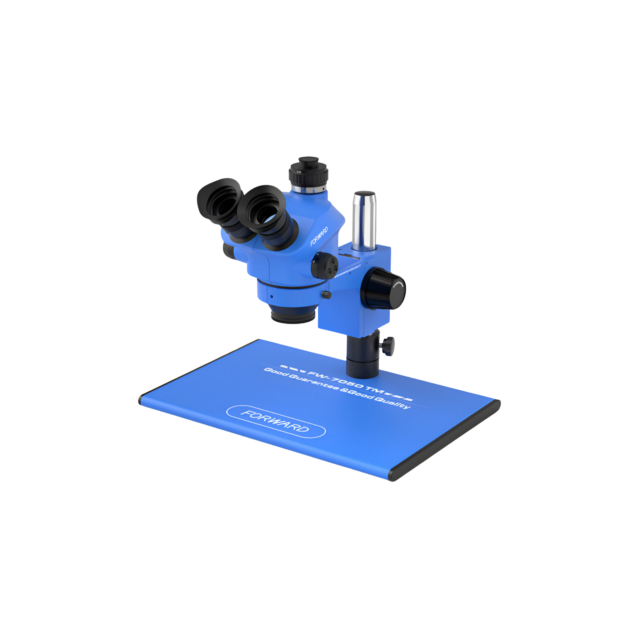 رأس ثلاثي العين Trinocular stereo microscope مزوّد بمدخل كاميرا C‑mount 0.5× (CTV) لسهولة ربط الكاميرا .