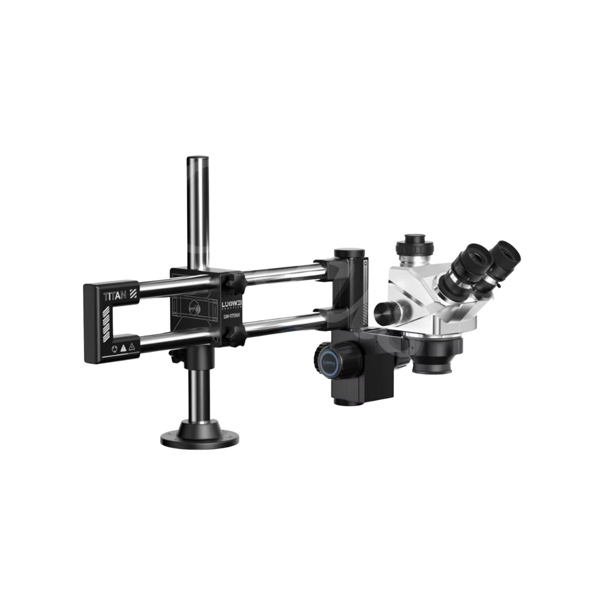 العدسة الشيئية: 0.7x – 5.0x، مع إمكانية استخدام عدسات Barlow إضافية (0.5x، 0.7x، 1.0x، 1.5x، 2.0x) لزيادة أو تقليل التكبير.