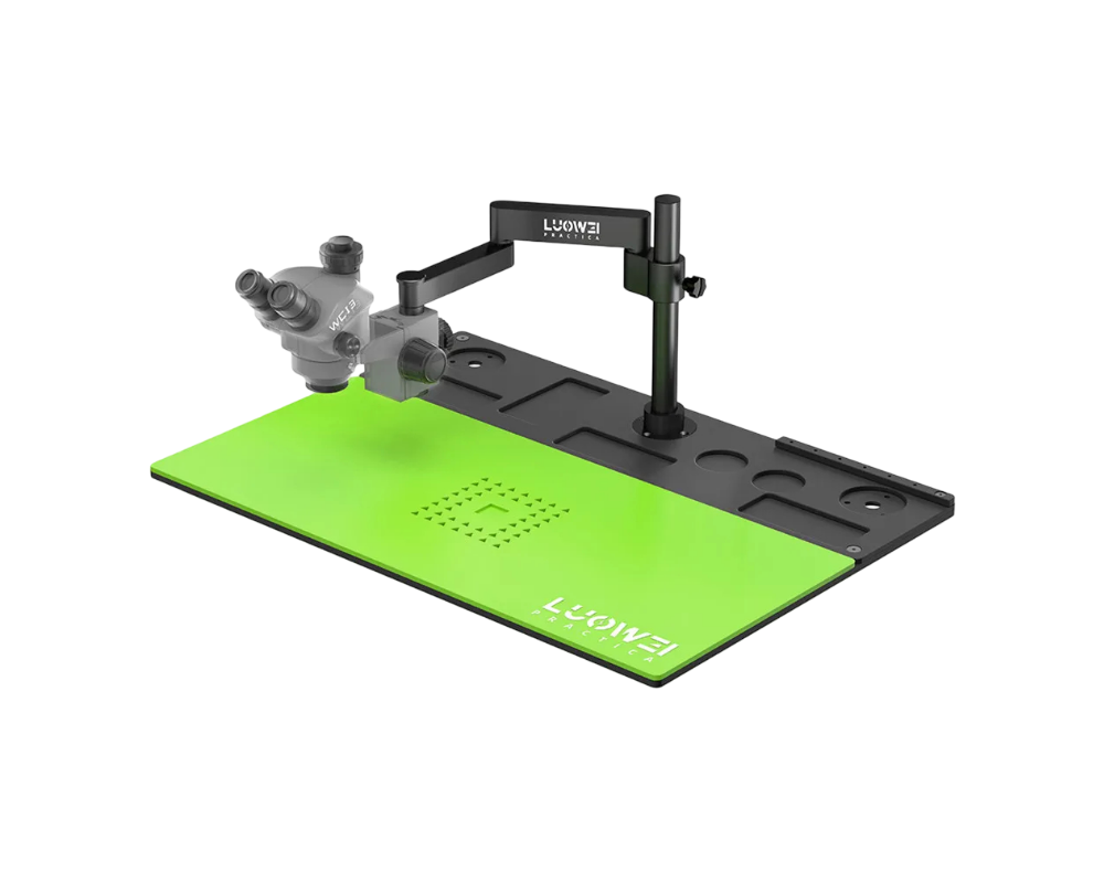 • مسافة العمل: واسعة تقارب 100–120 مم, مثالية للعمل بأدوات اللحام دون تدخل